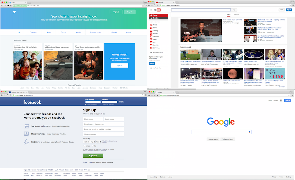Below is an image of four different internet sites. Clicking each one will reveal a scientific notation fact about it.